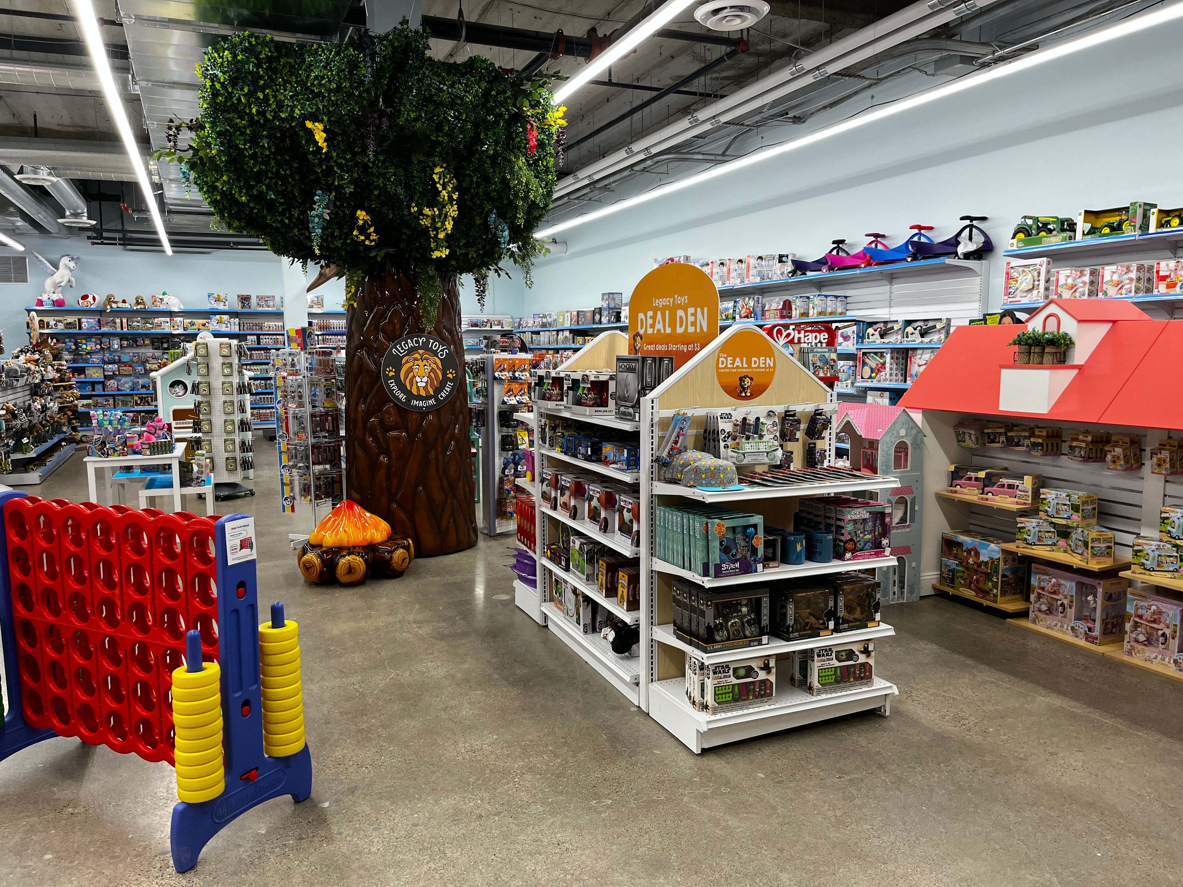 The Roseville, MN location brings you into Legacy town, featuring interactive Market, Pet Shop, Doll House, Log Slide, Giant Pin Art, Baby Triceratops and life sized tree. Our hope is that things like this in all 7 locations help more families Explore, Imagine & Create lasting memories.