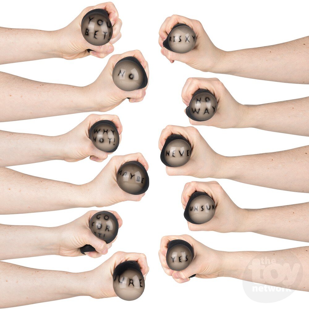 Ask a question and squeeze this Magic Answering Orb to get an answer. Makes for a great fidget toy.