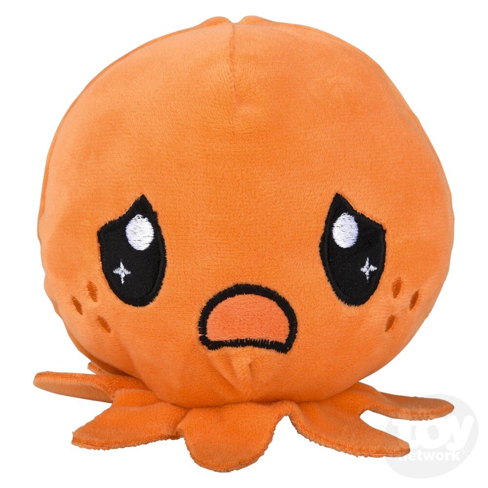 These adorable 5" Reverse-Eez Octopuses have a sad face on one side and a happy one on the other. Very soft.