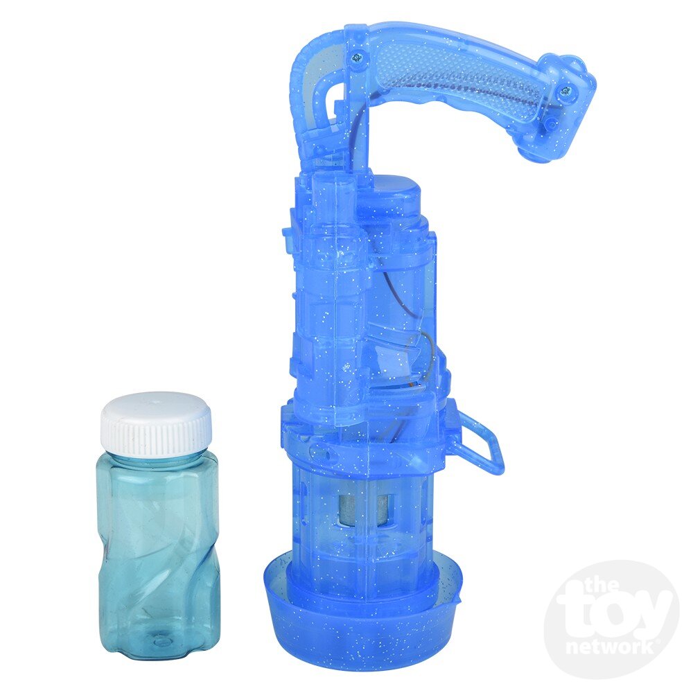 This 8" Light-Up Gatling Bubble Blaster comes with flashing lights and rapid fire bubbles. 1.69oz bubbles included.