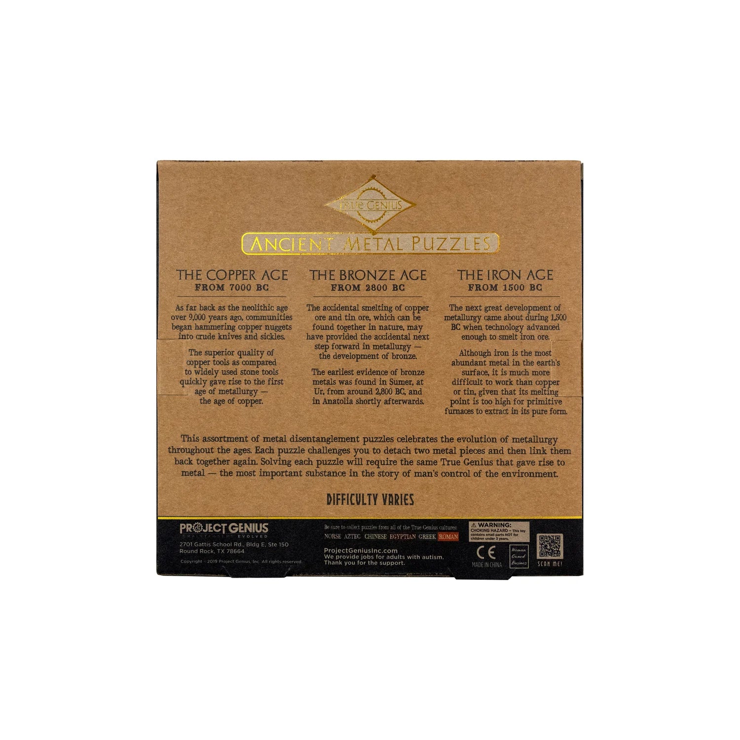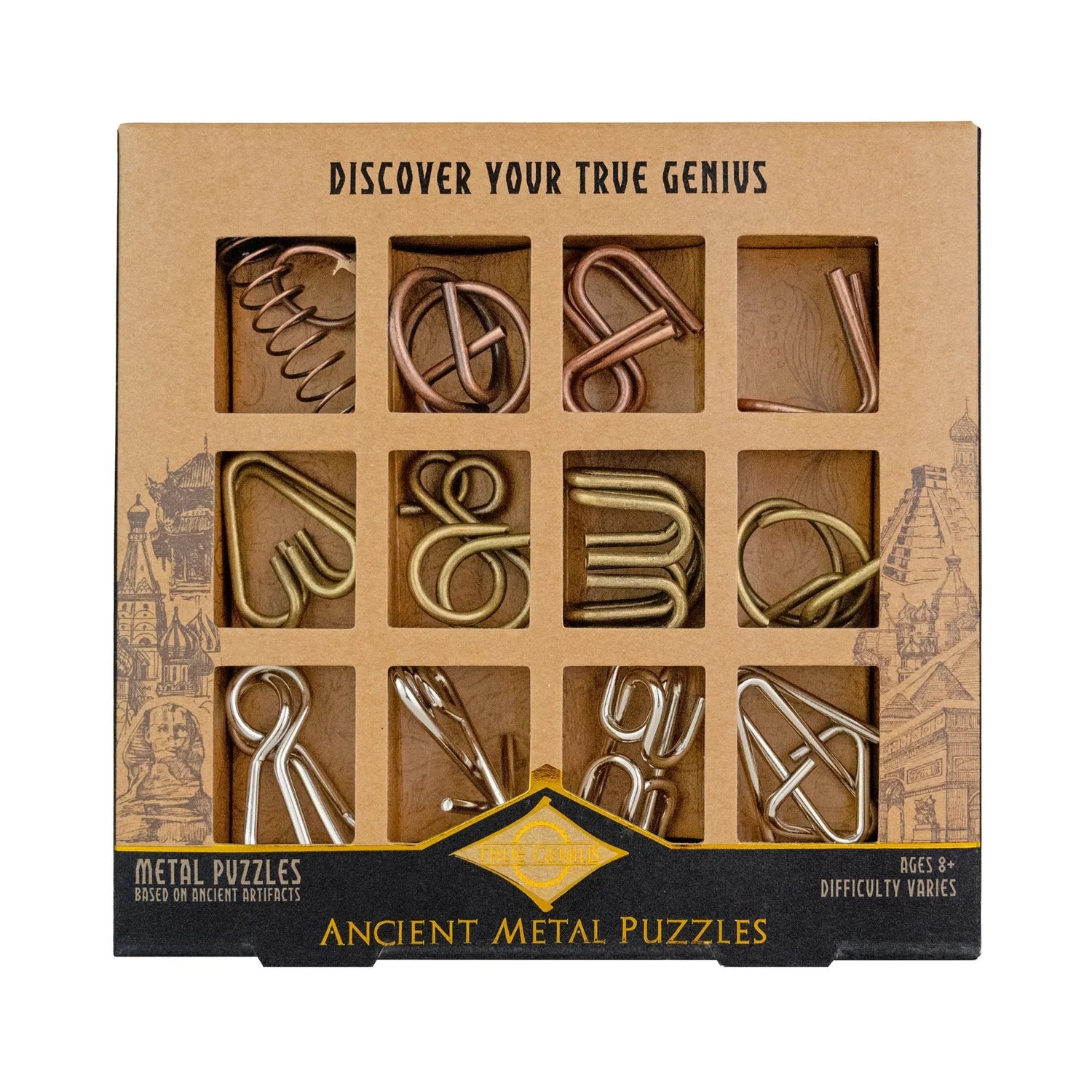 Embark on a hands-on journey through the evolution of metallurgy with the Ancient Metal Puzzle Set. The set, featuring 12 unique metal disentanglement puzzles, celebrates the ingenuity of the Copper, Bronze, and Iron Ages. Each puzzle challenges you to separate and reconnect intricate metal pieces, with difficulty levels ranging from easy to expert.