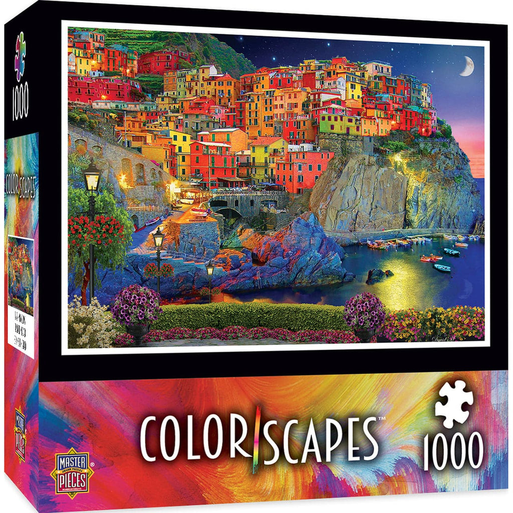 This MasterPieces 19.25" x 26.75" 1000pc Colorscapes Puzzle features vibrant and beautiful scenic landscapes such as cliffside village built right next to the water and the busy Time Square. These puzzles are examples of real world beauty, captured through the lens of several talented photographers. Evening Glow Puzzle features a bundle of cliffside building that were built near the edge of the cliff.