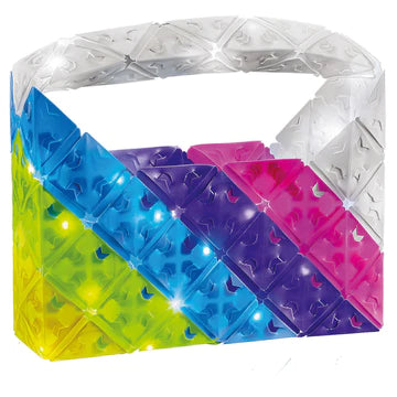 With 230 Creatto pieces and a string of 40 LED lights, you can build four beautiful, rainbow-colored models: a butterfly, dolphin, handbag, and designer dress. Battery-powered lights require 2 AA batteries (not included). Suitable for ages 8 and up.