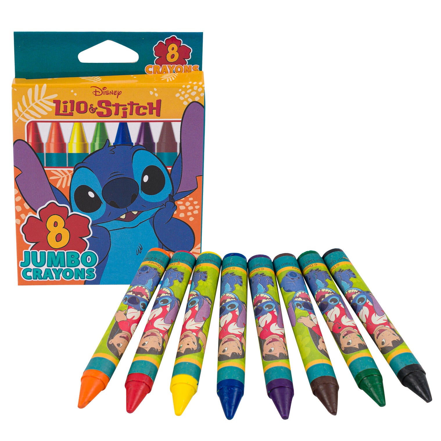 The Disney Lilo & Stitch 8ct Jumbo Crayons are the perfect set for young artists who love Disney's classic animated movie. These jumbo crayons are easy to hold and provide a vibrant color laydown, making them perfect for coloring and drawing. The set includes 8 different colors, all inspired by the beloved characters and tropical setting of Lilo & Stitch.