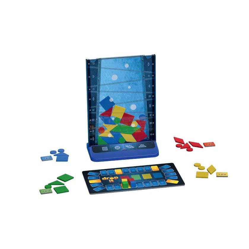 This colorful, inventive family game is easy to learn but deceptively mind-boggling! One at a time, each player drops a shape into the vertical game boards drop zone. Players earn points for the highest level that their shape reaches when it lands and extra points for touching bonus circles. But be careful: Dont break a landing rule! The shape you dropped is not allowed to touch matching shapes or colors after it lands. If you break a landing rule, you will go away empty-handed. The winner is the player or team with the most points at the end.