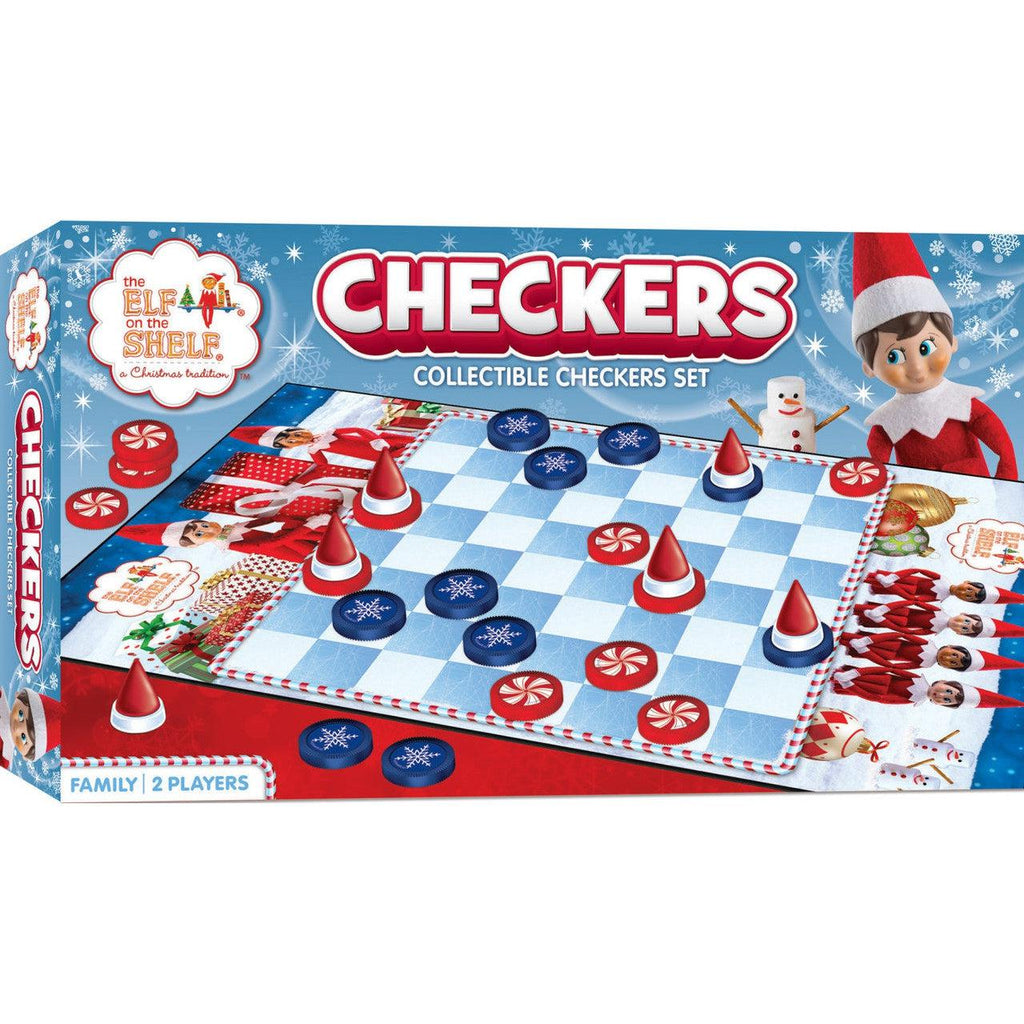 The Elf on the Shelf Checkers Game is the classic game of checkers where the king wears an Elf Hat! The Elf on the Shelf checkers game includes 24 blue and red checkers pieces, 8 Elf Hat king pieces, a 13" x 21.375" winter wonderland game board, 1 sticker sheet, and instructions._x000D_ _x000D_ For 2 players, ages 6+.