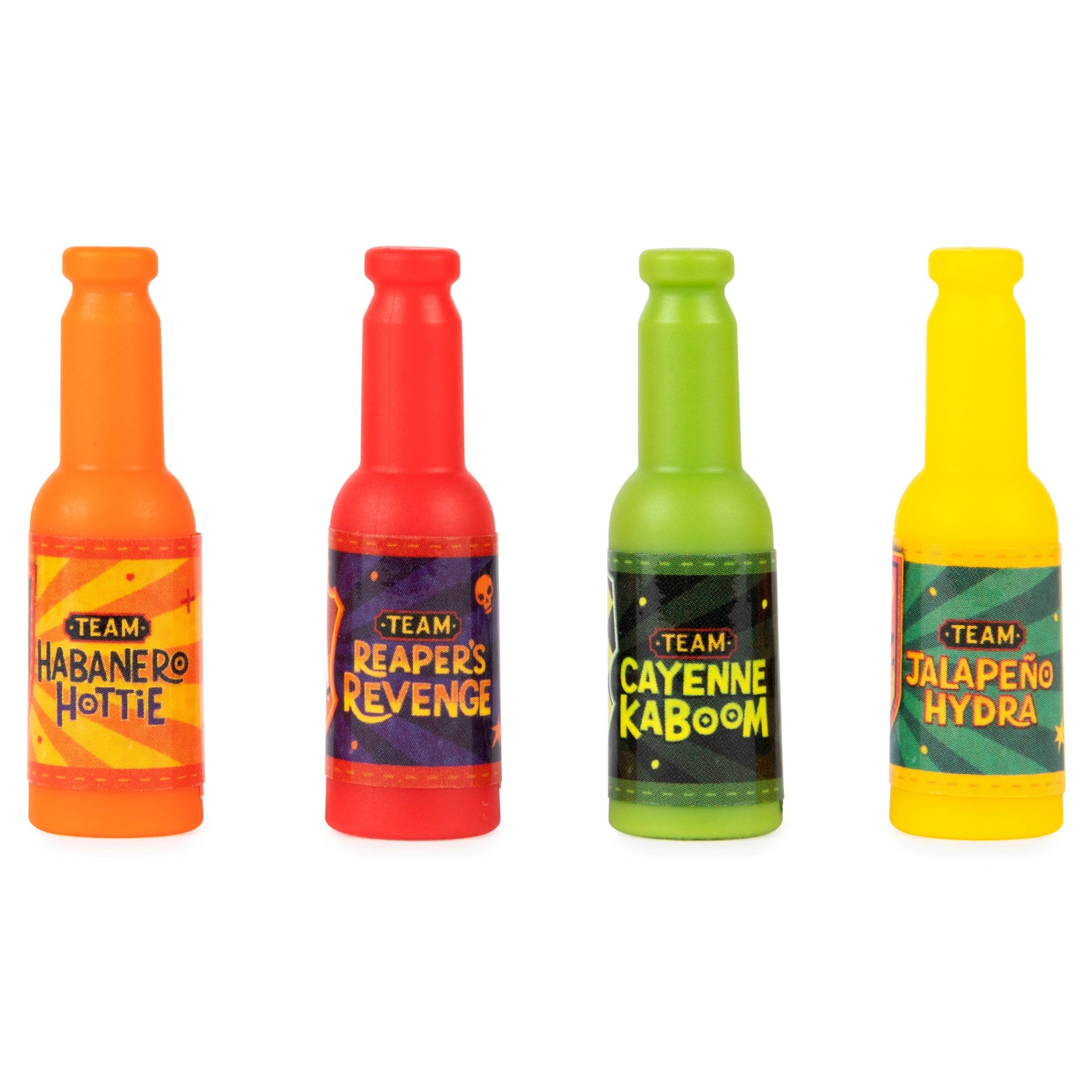 - Includes: 1 Gameboard, 4 Team Tasting Boards, 50 Jalapeño Cards, 150 Word Cards, 1 Sticker Sheet, 4 Hot Sauce Bottles, 1 90-second Sand Timer, 1 Dinner Bell