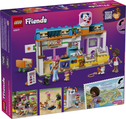 • PLAY OUT PET STORIES – Create tail-wagging stories for pups and their owners at the LEGO® Friends Dog Treats Bakery (42677) which includes an oven, coffee machine, refrigerator, seating and more