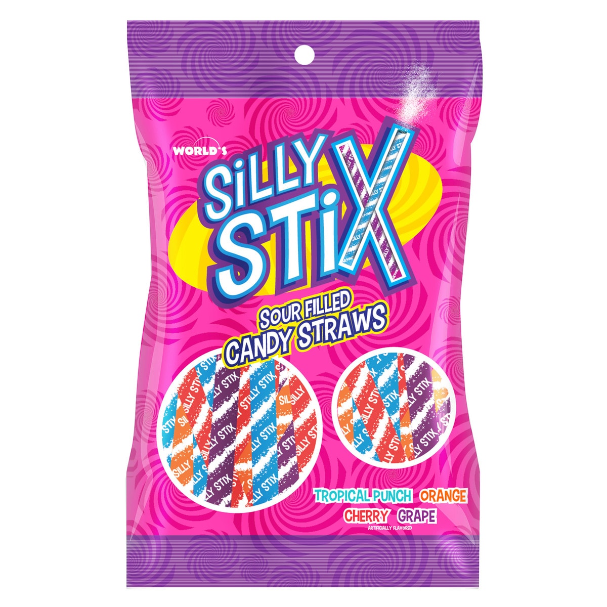 A straw filled with tasty fun! Each bag includes flavors such as tropical punch, orange, cherry, and grape.