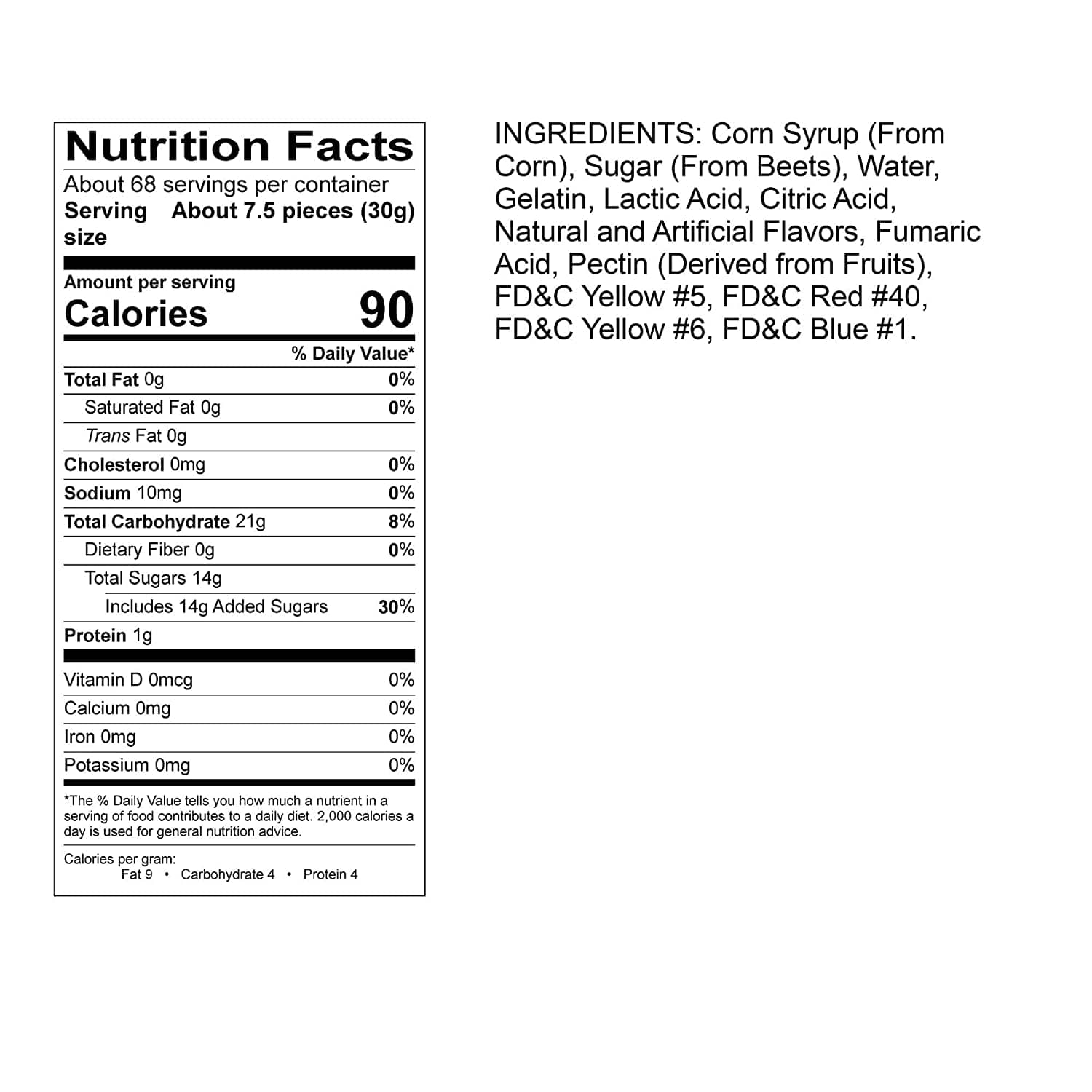 • Stock up with a 4.5-pound bag of Sour Gummi Bears in flavors of Cherry, Strawberry, Green Apple, Pineapple, Lemon, and Orange.
