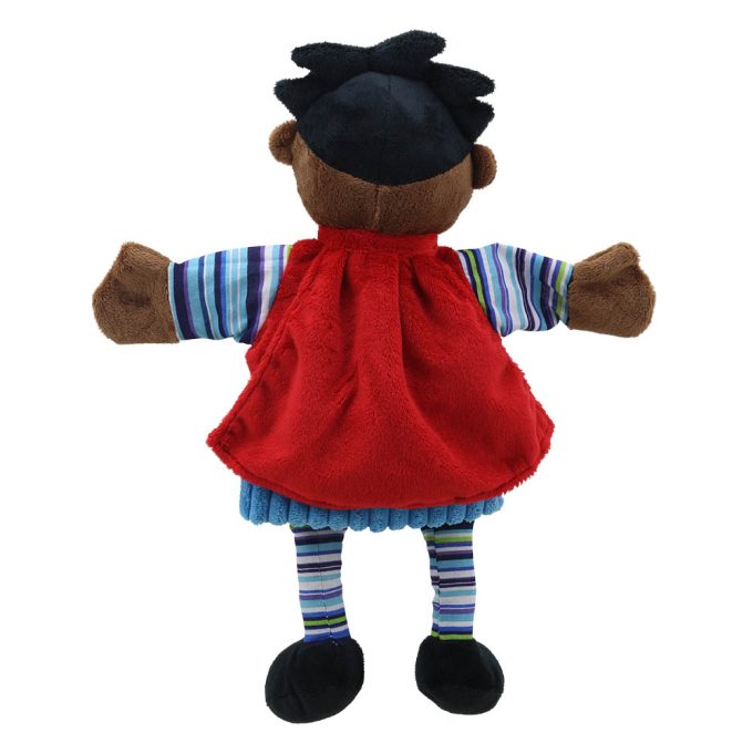 - Unleash the power of imagination with our Super Hero puppets! Wearing a blue mask, with red cape and stripy outfit, this friendly and dynamic character makes a captivating storyteller that you can use to make fly and create all sorts of (imaginary) magical powers! Ideal when used with other characters to bring storytime to life.