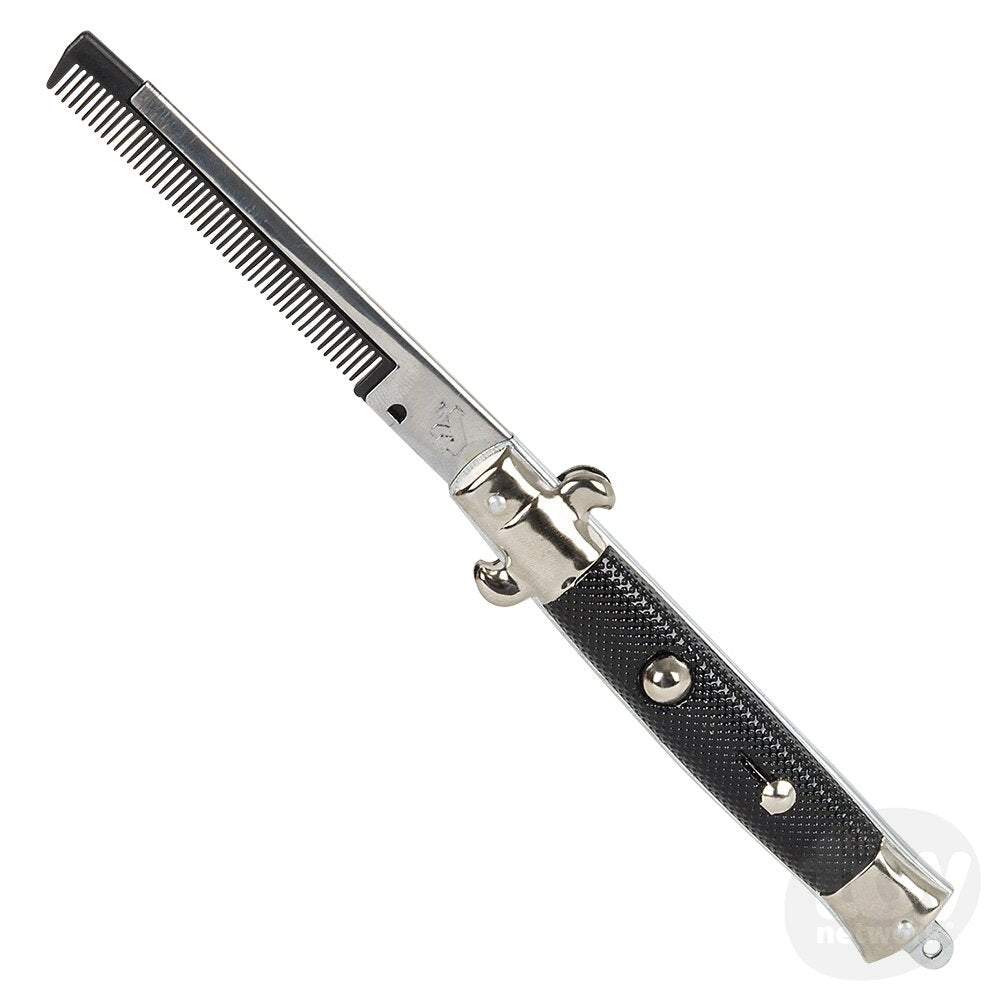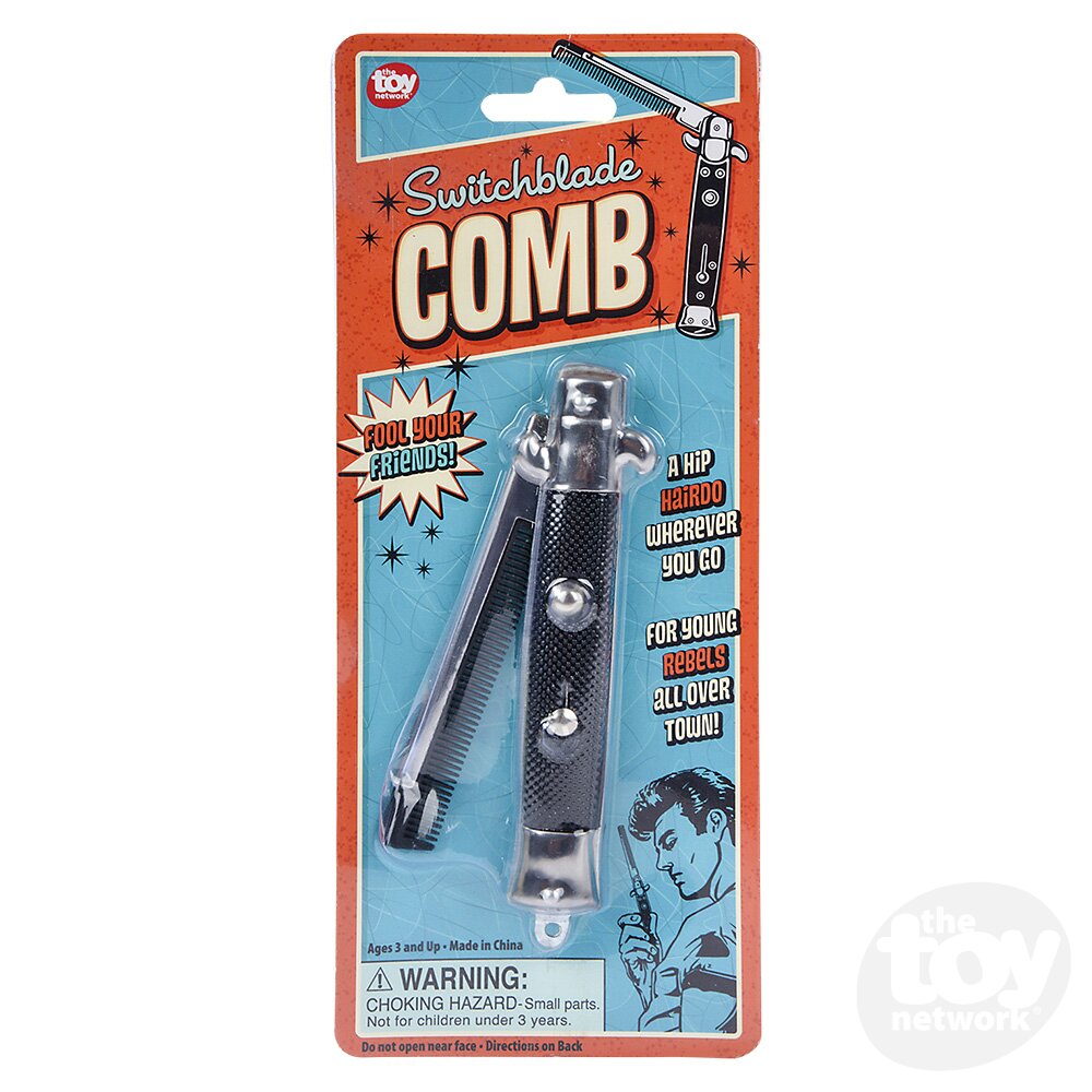 This Switch Blade Comb is a classic novelty toy. Click the button to flash the mini comb out to style your hair. Great costume accessory too.