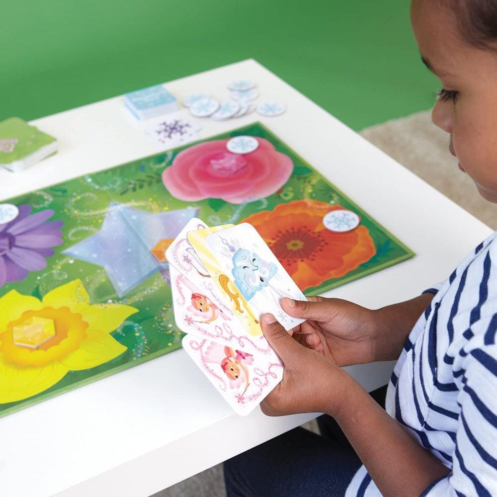 Mr. Winter is trying to freeze over the fairies’ treasured flowers! Players match Fairy Cards to gather the hidden Magic Gems before 4 snowflakes land on one flower. Special cards allow players to slow down Mr. Winter’s chill. Work together to fill the fairies’ magic wand and banish Mr. Winter from the garden!