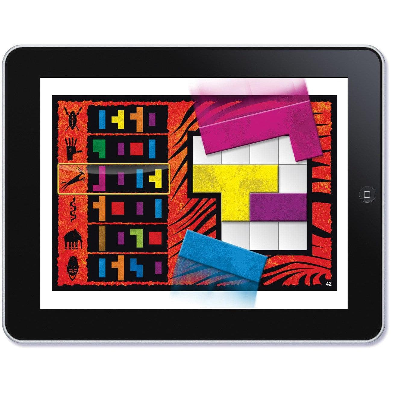 Ubongo by Grzegorz Rejchtman Ubongo is a fast-paced, addictive, and easy-to-learn geometric puzzle game. Players race against the timer and against each other to solve a puzzle of interlocking shapes. The faster you solve the puzzle, the more gems you get. The player with the most valuable gem treasure after nine rounds of solving puzzles wins! Here?s how it works: Each player receives a set of 12 tiles. The tiles are polyominos ? geometric shapes formed of equal-size squares joined edge to edge in different arrangements. At the start of each round, each player gets a new puzzle board. A roll of the die determines which tiles you must use to perfectly fill in the empty spaces on the puzzle board. Any players who complete the puzzle within the time limit yell out ?Ubongo!? and grab a gem at random from the bag. The fastest player also gets a blue gem and the second fastest an amber gem. Each gem color is worth a different amount of points. After nine rounds, the player with the most valuable gem
