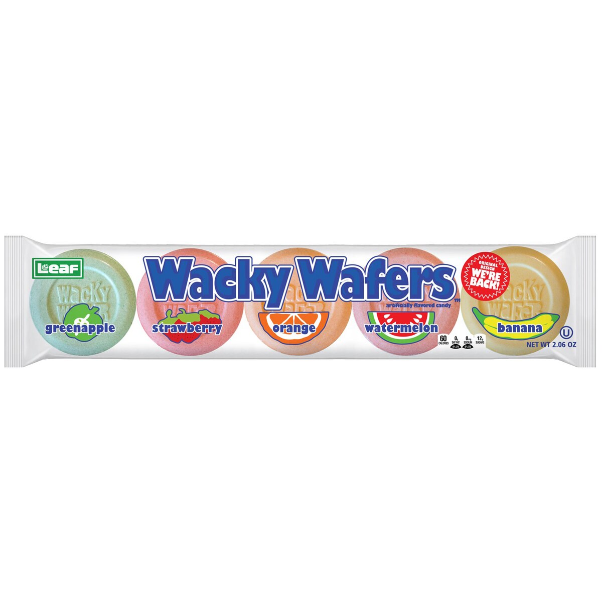 Your favorite big silver-dollar sized wafers are back! The smell of watermelon, orange, green apple, strawberry and banana with that perfect “crack” sound as you break them in your mouth are sure to bring back some nostalgic memories.